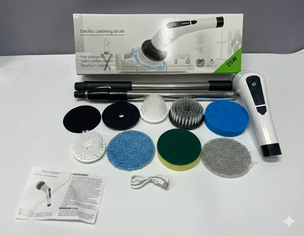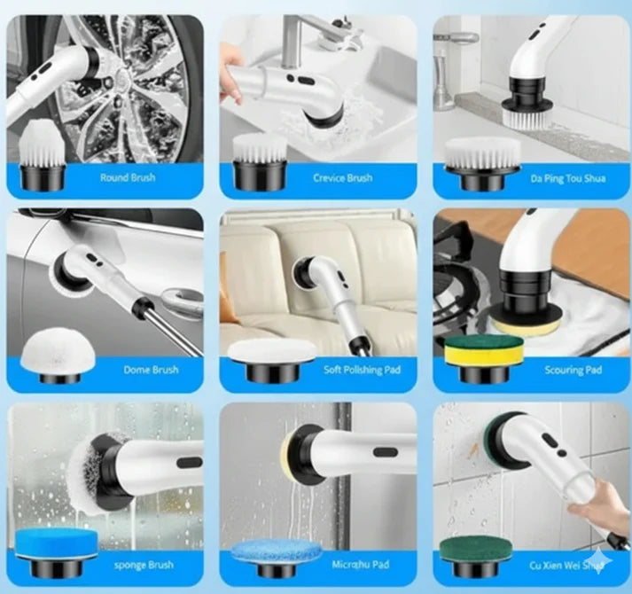 🧹 9 Cabezales en 1: Un cepillo para cada rincón (baños, cocina, vidrios y hasta el carro).